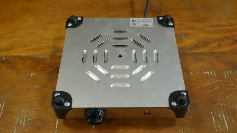 Como dito anteriormente, o fogão elétrico da Mondial conta com uma LED vermelha para indicar o funcionamento. De qualquer forma, a iluminação não é suficiente e em ambientes claros como a cozinha, não dá para perceber se a luz está ligada ou desligada. Seus 4 pés deixam o produto estável numa superfície.