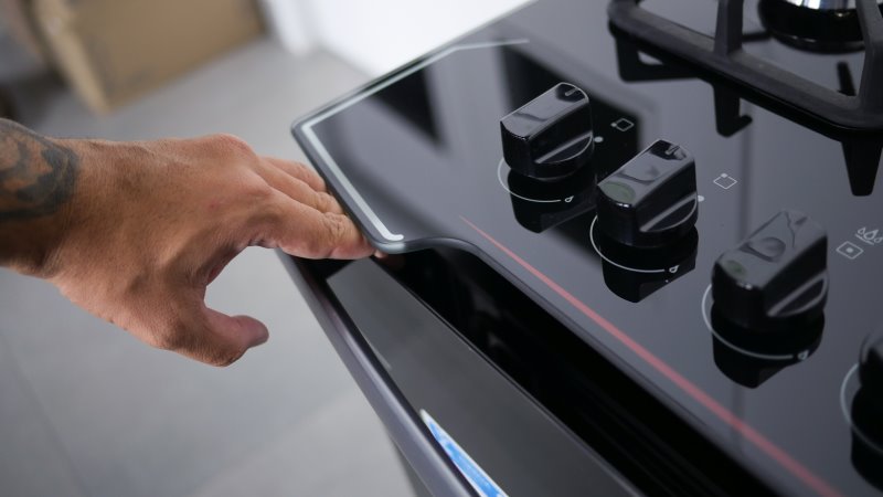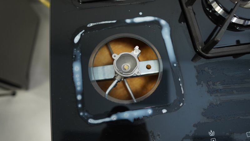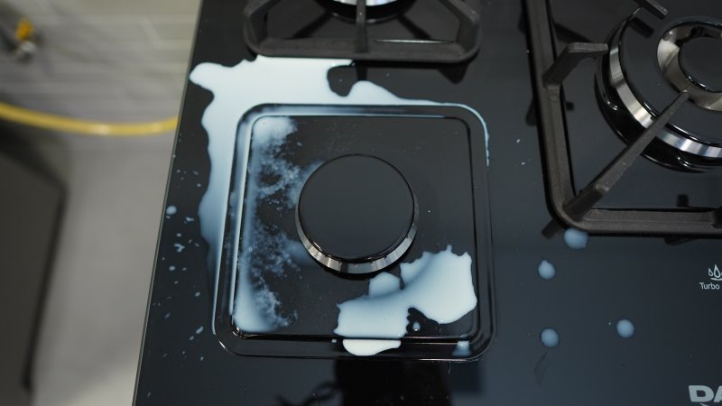 Além disso, líquidos tendem a escorrer para trás do fogão. Esse caso não é tão ruim devido ao amparo de vidro. Seu encaixe possui uma espécie de escoamento, dessa forma a sujeira não entra em lugares inacessíveis.