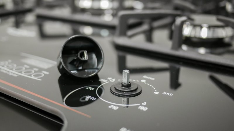 Os responsáveis pelos queimadores no lado esquerdo e o do forno ao lado direito, com o display entre eles.
