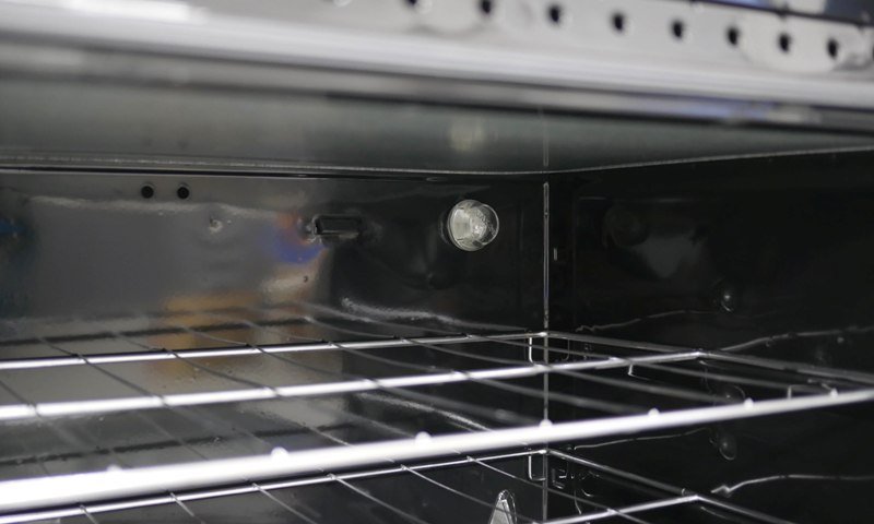 O esmalte nas paredes auxilia na limpeza do forno. Somente é importante evitar que haja respingos no topo do forno, pois como não há pintura, mancha com facilidade e pode enferrujar com facilidade. Quando puxando as grades deve-se ter cuidado também para não remover o esmalte das paredes.