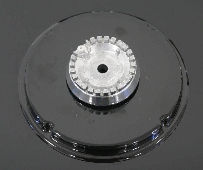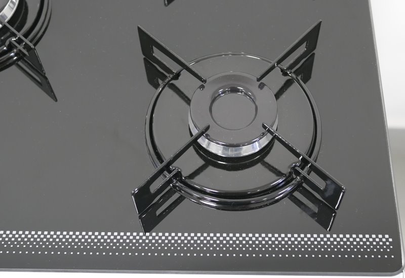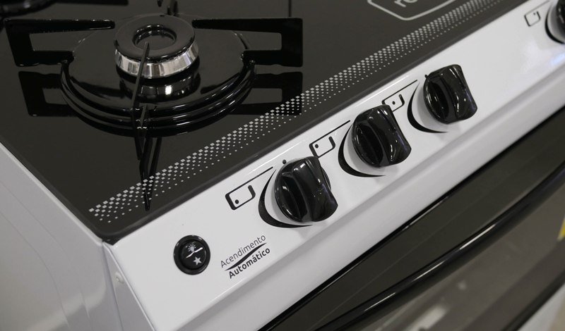 O produto tem três tipos diferentes de queimadores: um pequeno de 1600W, um médio de 1800W e três grandes de 2750W. As peças grandes ficam na parte de trás do fogão e na boca central.
