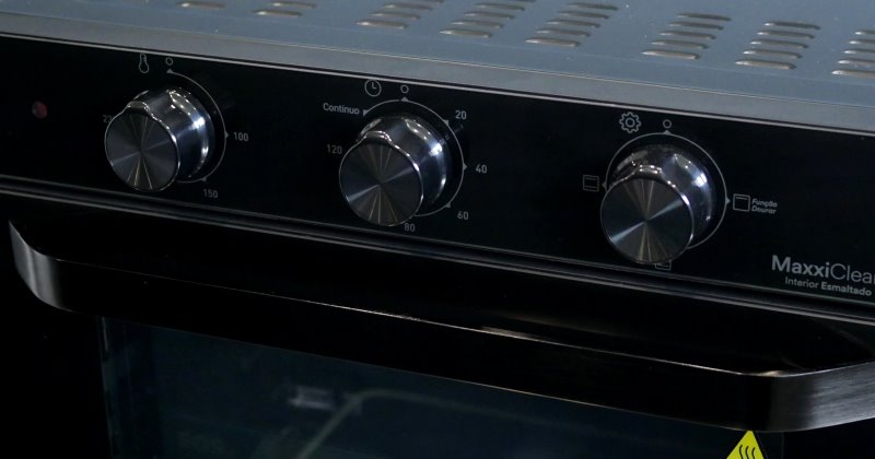 Somando os três elementos, o forno Maxxi Clean é complicado para o uso. Para se ter uma ideia, com somente a resistência inferior ligada, para assar um bolo a temperatura máxima atingida foi somente 175°C, mesmo colocando o seletor na temperatura máxima (230°C).