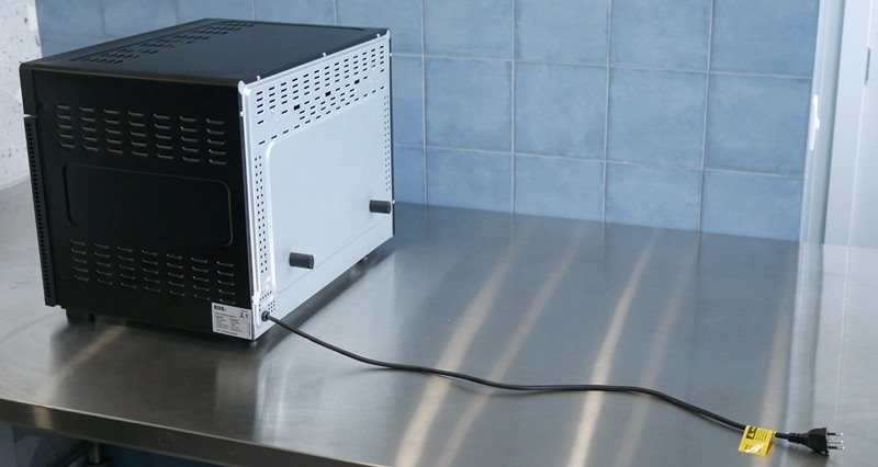 O cabo de alimentação saindo na parte traseira inferior direita, favorece a segurança, porém seu comprimento não ajuda. Se tiver que atravessar o forno para ligar em uma tomada na esquerda sobra somente 30 centímetros de cabo.