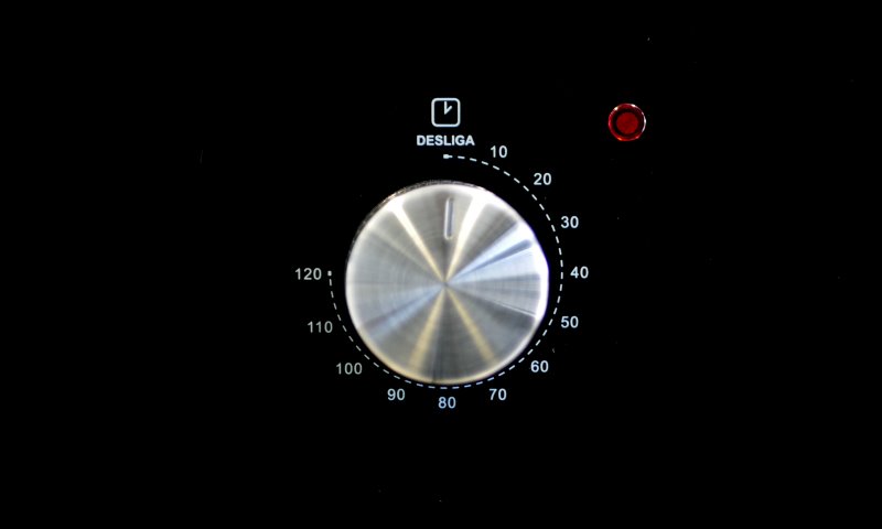 Além da funções é possível selecionar até 2 horas de funcionamento com o seletor da direita. Um ponto interessante é a possibilidade de utilizar o forno no Modo Contínuo ou seja, deixar o forno ligado por um tempo indeterminado. Acabamos descobrindo essa função por completo acaso já que nem o seletor nem o manual de instruções informam essa possibilidade.