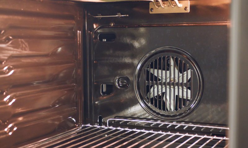 No fundo da cavidade é possível encontrar o ventilador utilizado para convecção e uma lâmpada de intensidade razoável que ilumina o interior.