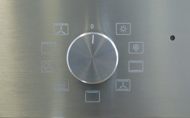 Acima da porta é possível encontrar o painel digital no centro, com dois seletores que aparentam serem feitos de alumínio usinado com uma ótima qualidade de construção. Do lado direito há um seletor de temperatura e do lado esquerdo um igual para selecionar as diferentes configurações de resistências.