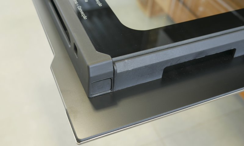 A limpeza geral do conjunto não é complicada, toda a parte frontal pode ser limpa com um pano úmido sem muita dificuldade. Analisando internamente, é possível remover 2 das 3 camadas de vidro da porta. Esse processo também é fácil de ser realizado: basta apertar dois pequenos botões e remover uma peça plástica que se encontra na parte superior da tampa, depois disso os vidros estão soltos e podem ser removidos para higienização. Inclusive existe a possibilidade de remover a porta por completo utilizando duas travinhas encontradas na dobradiça.