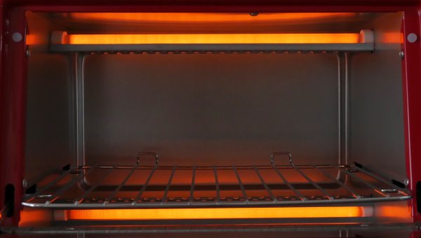 As duas resistências ficam no centro do forno, atravessando de lado a lado, uma no topo e uma no fundo. Como não há pontos de aquecimento nas laterais, a distribuição do calor não é o ponto forte deste forno. Alimentos mais próximos do centro sofrerão um impacto muito maior do calor.