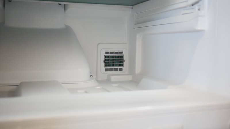 Uma funcionalidade que vale mencionar, e fica bem discreta neste refrigerador, é o filtro de odores, atrás da bacia. É uma peça simples, provavelmente de carvão ativado. O filtro pode ser encontrado com facilidade para substituição, porém apesar de simples custa em torno de R$40!
