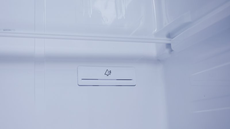 O seletor de temperatura fica dentro do refrigerador e é simples. Possui somente dois botões, um para mudar a temperatura e outro para ativar o modo “Power Cool”. Interessante aqui que a Samsung apresenta os níveis em graus, diferente de muitos produtos que usam a nomenclatura de mínimo, médio e máximo. É possível ajustar de 1°C a 7°C. O “Power Cool” é basicamente um turbo que trabalha na máxima ventilação de ar e o compressor no máximo.