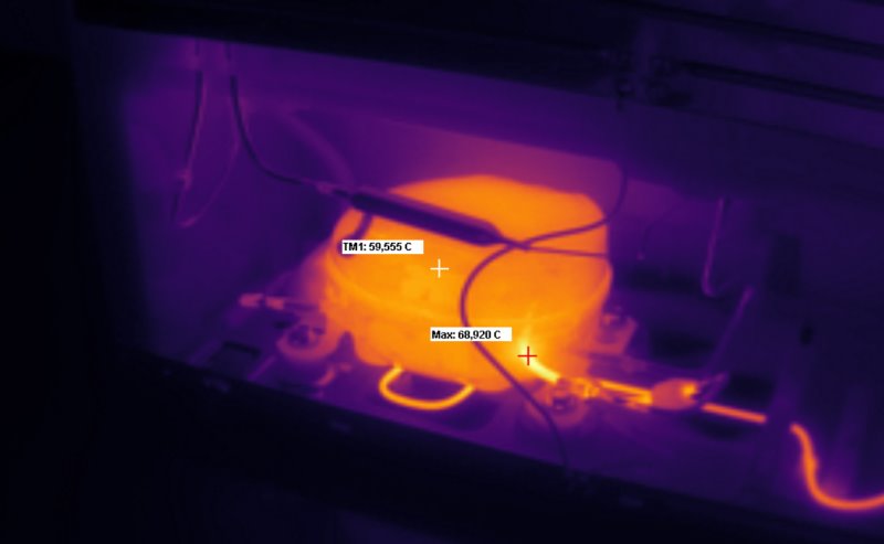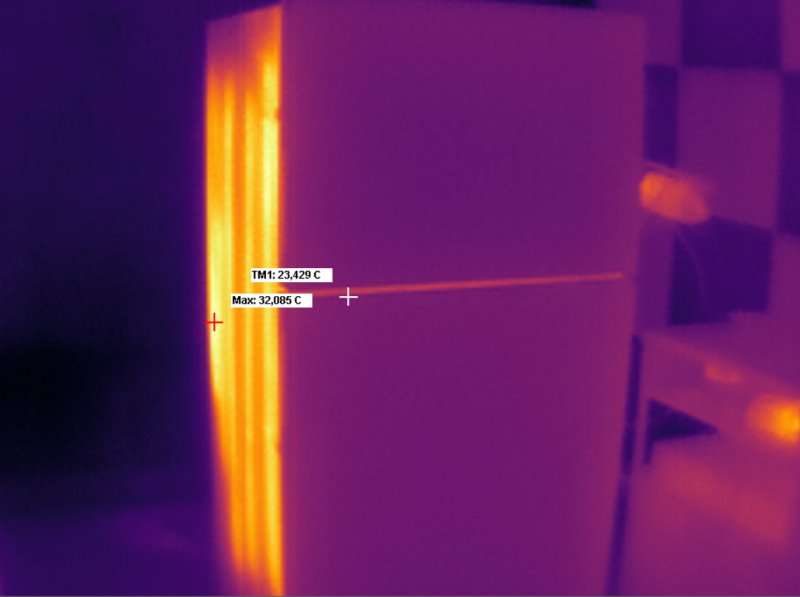 Este refrigerador trabalha com as laterais bem mais frias que outros modelos que testamos, que às vezes chegavam a quase 60°C. Desconsiderando a área onde está o compressor que chega acima de 65°C, as outras áreas não passaram de 40°C!