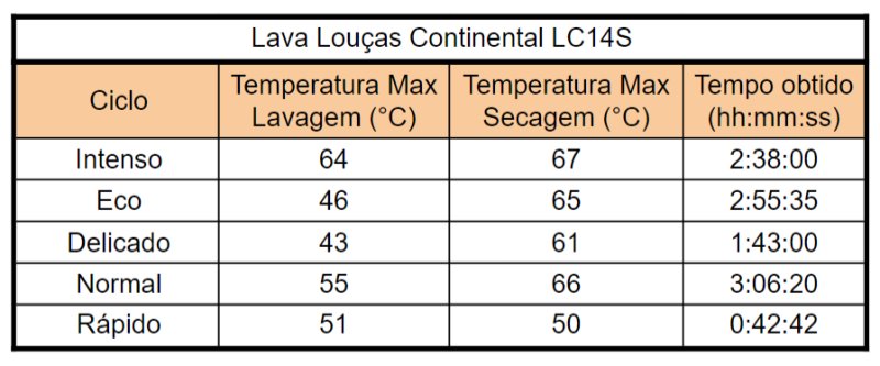 O tempo dos ciclo ficaram próximo do declarado em qualquer programa utilizado, com pouca variação. A única exceção foi o Eco, que terminou cerca de 20 minutos antes do previsto.
