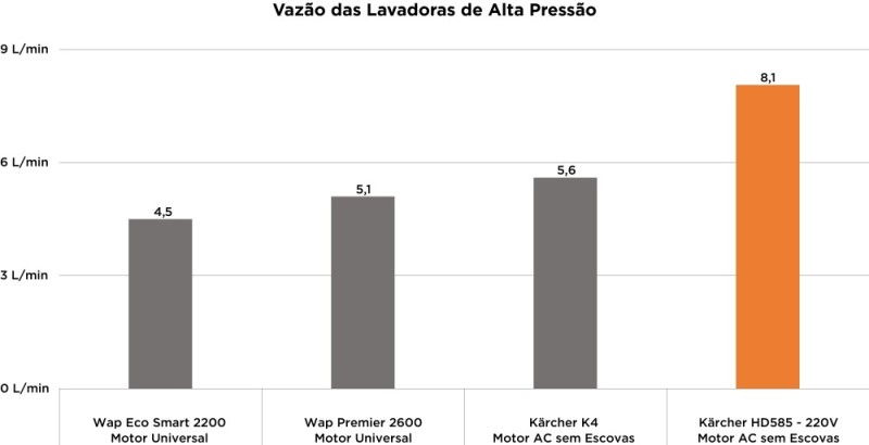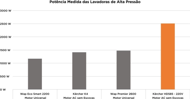 Com isso, fica próximo da WAP Premier 2600, sendo mais alto que o modelo Karcher K4, mas abaixo ainda do modelo Wap Eco Smart 2200.