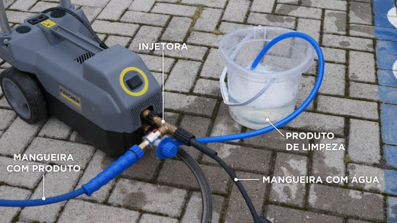 No entanto, a opção mais interessante e profissional para este tipo de lavadora de alta pressão é utilizar injetoras para a o uso de detergente acoplados na saída de água pressurizada, já que o conjunto traz uma vazão de água alta o suficiente para isso.
