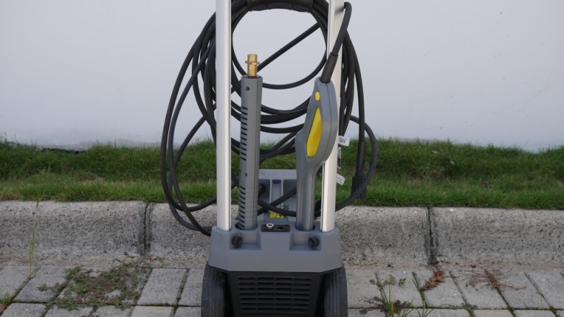 Entretanto, o manuseio da Karcher HD 585 exige certa força devido ao peso considerável do motor de indução e da bomba, totalizando cerca de 20 kg.