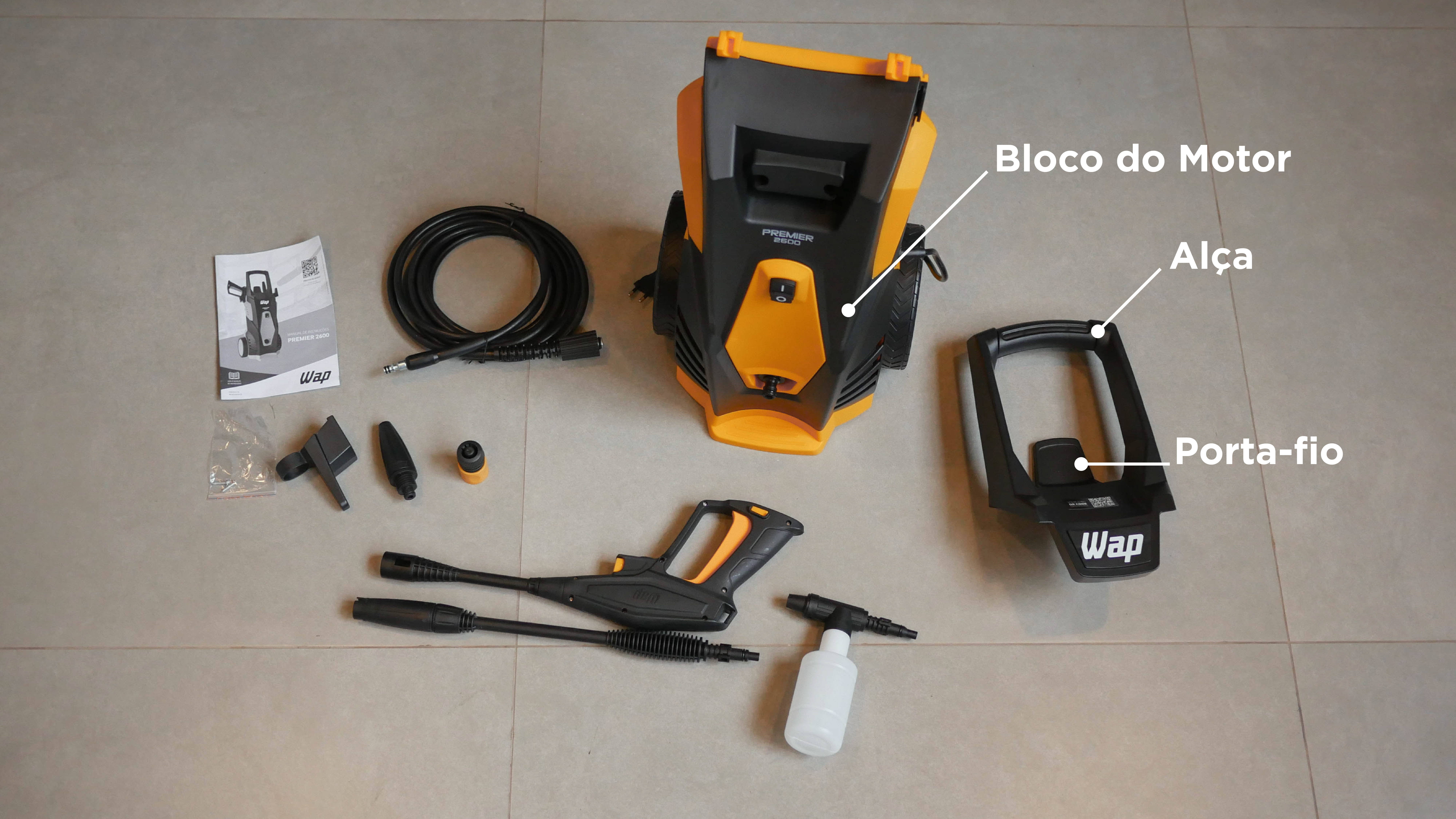 Mesmo assim, a Wap Premier 2600 se consolida como uma lavadora de alta pressão versátil, seja montada durante o uso ou desmontada para ser armazenada.