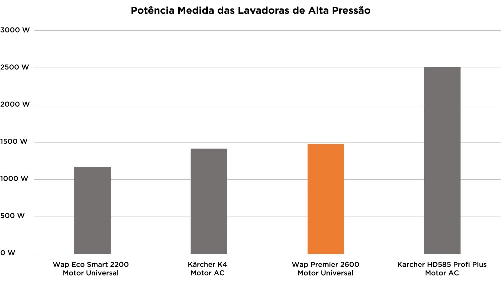 A WAP Premier 2600 é uma lavadora de motor universal (DC com escovas), ou seja, um motor mais simples, normalmente utilizado em produtos de linha de entrada. Tipicamente esses motores mais leves podem entregar resultados até similares a motores de indução (AC sem escovas), porém são mais sensíveis: com menos robustez e durabilidade.