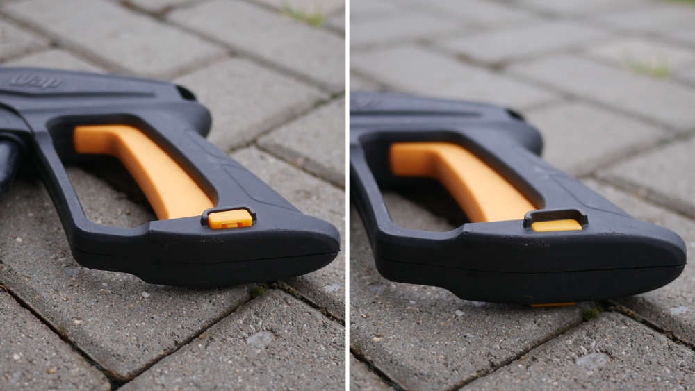 A Lavadora de Alta pressão Wap Premier 2600 conta com uma trava do gatilho para evitar que ela seja acionada acidentalmente ou durante uma troca de lança ou bico.