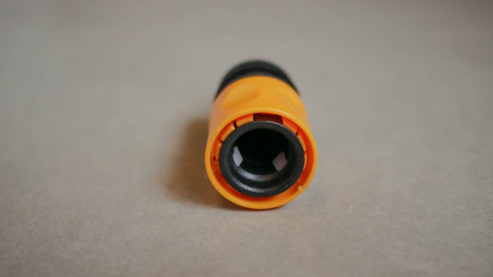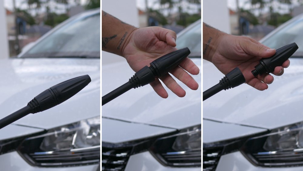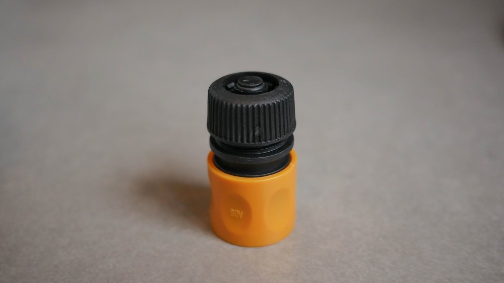 Juntamente com a lavadora de alta pressão, é enviado uma conexão do engate rápido para anexar na mangueira. Este vem com uma válvula interna para funcionar somente quando encaixado na lavadora.