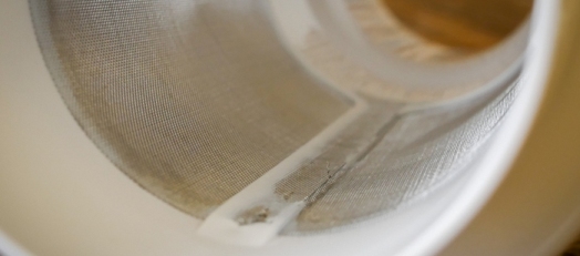 Este liquidificador vem com um filtro de bagaços que encaixa facilmente na jarra. O material do plástico é ótimo, rígido, mas há um defeito que não agradou. Não há proteção plástica no término da tela de metal e com isso é possível espetar os dedos nos arames da tela.