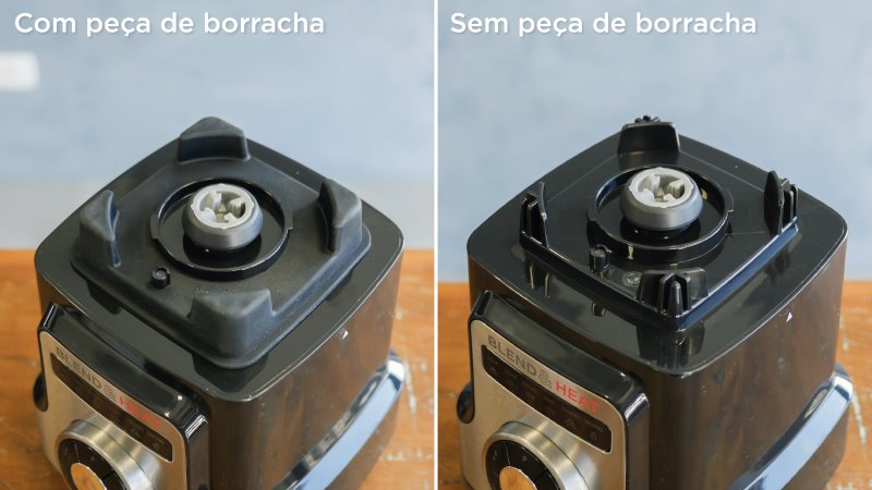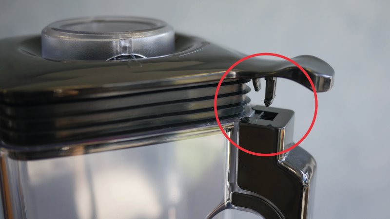 Um ponto interessante, é que o painel e o liquidificador só ligam com a jarra encaixada e sua tampa fechada. No topo da alça há um contato mecânico que transmite a um pino no encaixe.