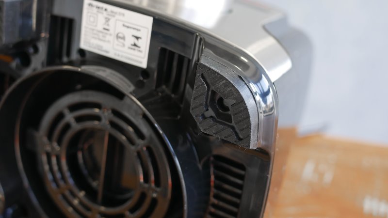 Sua jarra também fica estável no corpo, não se movendo em nenhum momento. Apenas lembre que ela fique totalmente solta. Tentar usar sua alça de alavanca para carregar o produto não é uma boa ideia. Tome cuidado ao manipular com mãos engorduradas, a alça da jarra possui detalhes emborrachados que podem ficar melequentos. O mesmo pode ser dito da “cama de borracha” que faz o encaixe da jarra com o corpo.
