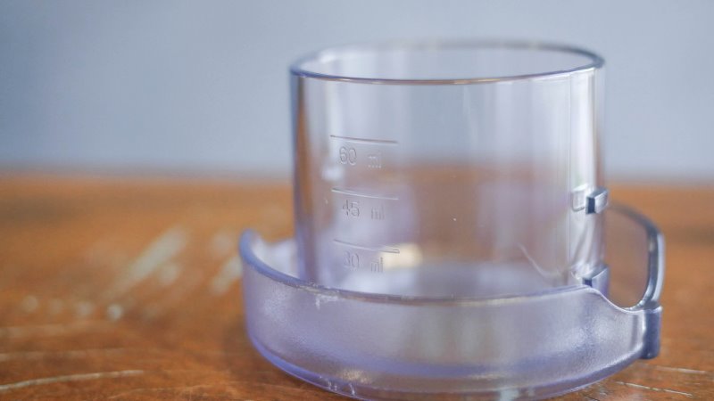 O preparo é demorado, com muitas pausas necessárias, cerca de 20 minutos. A velocidade mínima ainda é alta para esse tipo de preparo. Os grãos são jogados para canto, não tocam nas lâminas e o socador não alcança para ajudar. Quando começou a ficar pastoso, a situação mudou. A partir deste ponto, a pasta escorria em direção a lâmina e o processo foi rápido, sem pausas.