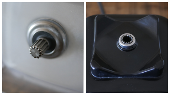 A jarra não trava no corpo, porém fica estável quando batendo, mesmo quando há alimentos duros dentro. Ela chega a mexer, mas não cai. O encaixe do eixo das lâminas é de alta qualidade assim como o encaixe no eixo do motor. A Blendtec fez a conexão para dentro do corpo, deixando seguro a rotação do eixo, mesmo quando a jarra do liquidificador não está encaixada.