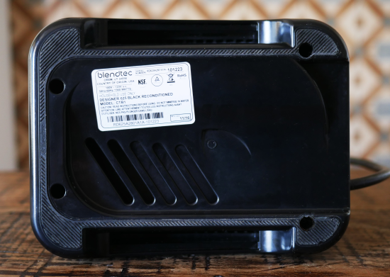 O Blendtec Designer 625 tem o corpo vedado, e todas as teclas são digitais, com touch capacitivo. Mesmo que caia água sobre a interface, nada irá acontecer. Quando ligando na tomada, uma luz no canto direito acende indicando o botão liga/desliga. Assim que o botão é apertado, toda a interface aparece. É muito bem feita, com uma resolução que agrada, sem ser chamativa.