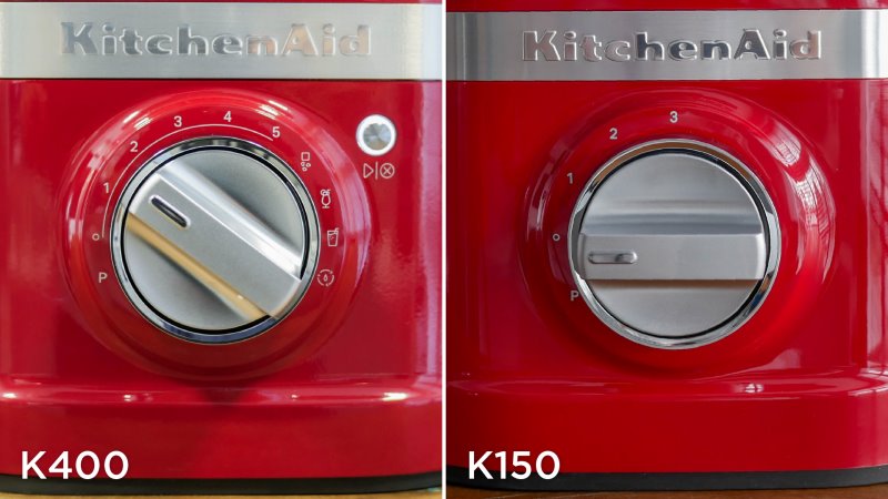 A seleção de velocidades também é diferente: o K150 tem as três velocidades bem definidas; enquanto o K400 tinha como diferencial um seletor contínuo, que contabilizava uma velocidade para cada posição entre os números.