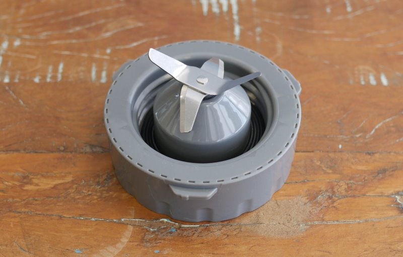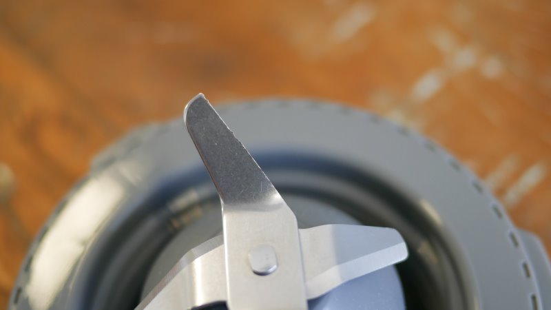 As lâminas são removíveis: um par em ângulo para cima, e outro par para baixo. Nenhuma é serrilhada, e as pontas são arredondadas. A base em que estão também possui um anel de borracha para fazer a vedação. Para tirá-lo, apenas sacuda a peça.