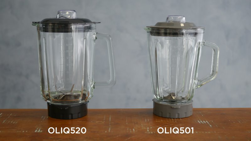 Há mudanças no desenho da jarra em relação ao outro modelo, é mais cônica. A mudança estética mais notável aparece na alça, a deste OLIQ501 é mais estreita que o outro modelo, apesar que ainda confortável.