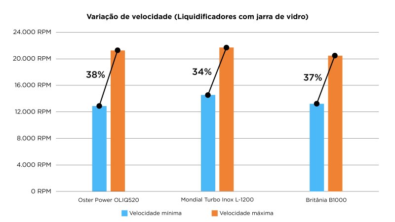 Das 10 velocidades apresentadas pelo OLIQ520, 8 possuem uma diferença significativa entre si. A variação de 38% entre a mínima e a máxima fica próxima da observada em outros modelos com grande número de velocidades como o Mondial L-1200 e o Britânia B1000; o perfil geral se aproxima bastante do Walita Ri2242.