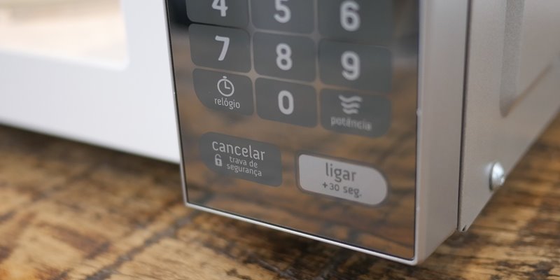 É possível travar o painel do micro-ondas segurando a tecla de pausa/cancela por 4 segundos, algo simples e visualmente claro no painel.