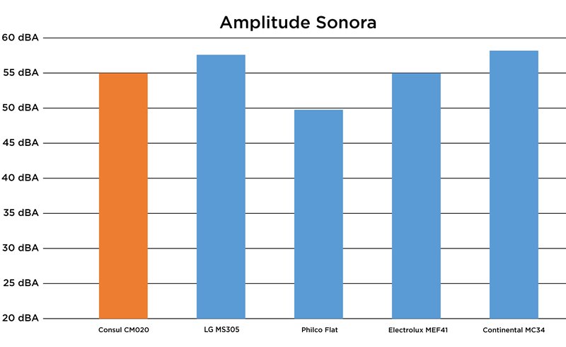 Quanto à amplitude sonora, o Consul CM020 foi bem similar aos já testados até o momento, atingindo cerca de 55 dBA.