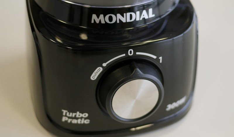 Olhando sem o copo o Mondial Turbo Pratic mais parece um mini liquidificador do que um típico mini processador. Tanto o corpo como o seletor estão combinando com a linha de liquidificadores grandes da Mondial.