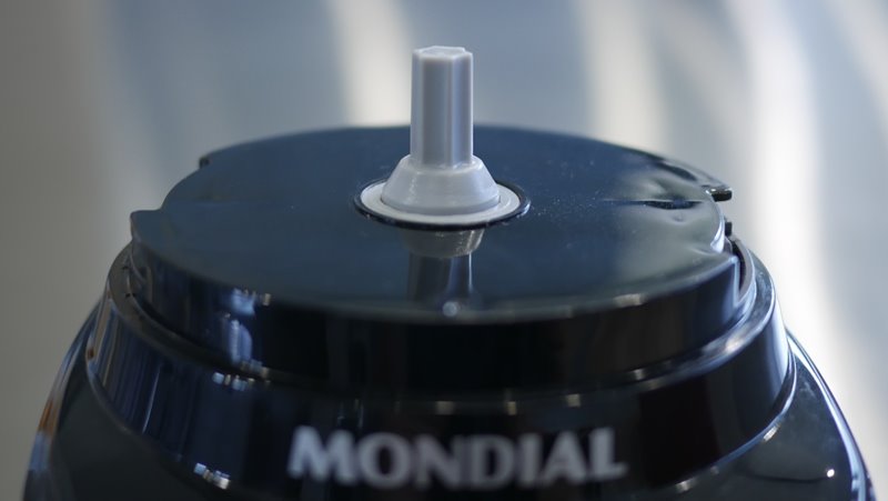 O encaixe da lâmina é plástico, e no centro há uma fresta com potencial de contaminação caso haja um transbordamento por excesso de volume. Sendo assim é de extrema importância evitar do conjunto passar de seu limite útil. Nos testes realizados medimos o volume máximo antes do transbordamento em torno de 650 mililitros. Considere o limite máximo 500ml, pois é visível e garante contra qualquer chance de transbordamento.