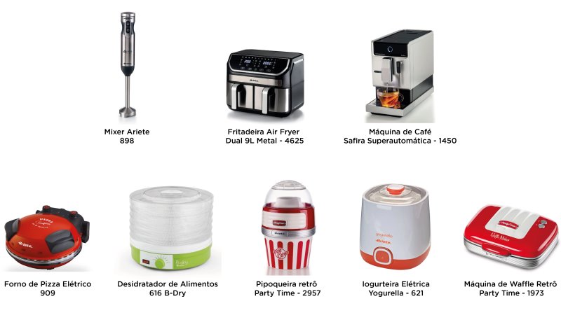 Ariete é uma das marcas do grupo De’Longhi, maior fabricante de eletroportáteis na Europa. É uma marca tradicional lá, bem vista entre consumidores por seus produtos de qualidade.