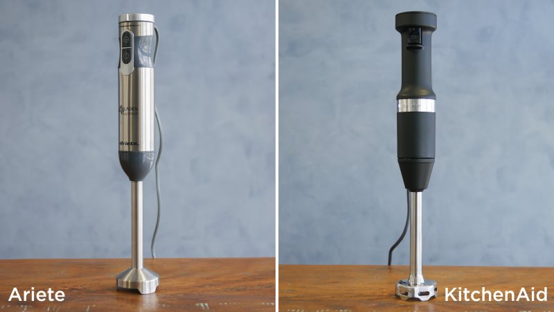 O benefício de ser metálica é que a haste pode ser usada mesmo em alimentos quentes sem se preocupar. O lado negativo, é que vai acabar riscando as superfícies que entrar em contato. Podendo tirar o antiaderente de panelas, e riscando o próprio copo que é incluso. Algumas marcas incluem um protetor de panelas, para impedir os riscos, mas aqui não aparece.