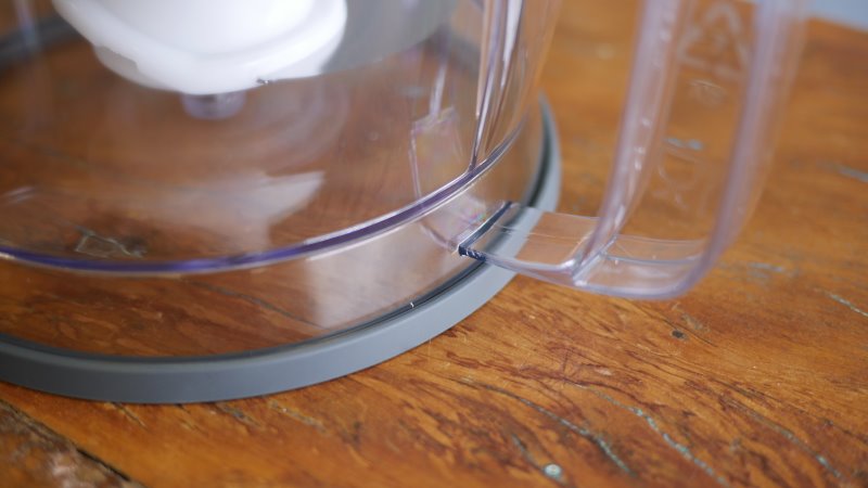 Aconteceu em nosso laboratório uma situação em que a tampa do processador tinha sido lavada e seca, porém a peça é oca. Ao usar o mixer, a água que estava no interior da tampa foi disparada sobre a comida, contendo um pouco de lubrificante.