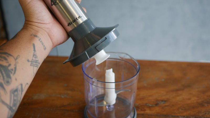Um ponto que vale tanto para a haste quanto para outros acessórios é não deixar de molho as partes com eixo ou caixas de redução! Ou seja: as tampas dos processadores, o topo do fouet, do espremedor de batatas e da haste