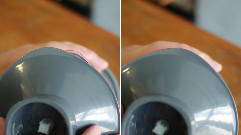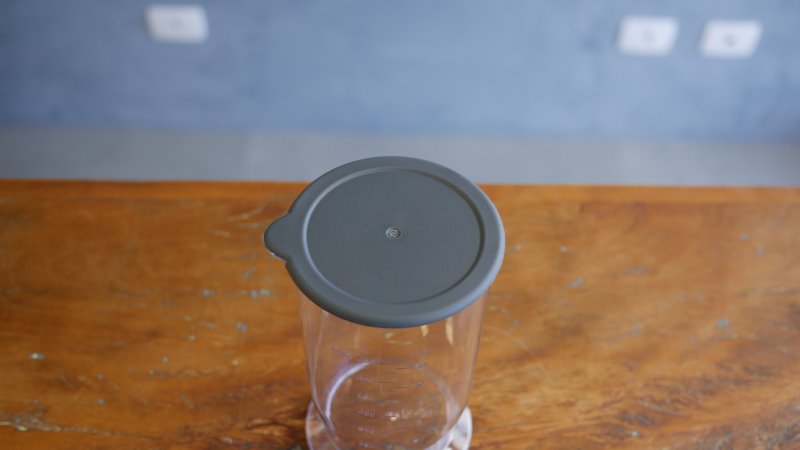 Outra função muito especial da tampa é servir como abafador de ruído, não é por acaso que ela se conecta perfeitamente na base do copo. Ao usar o mixer, prenda a tampa embaixo para absorver as vibrações entre o copo e a mesa. A diferença é notável e os outros acessórios também contam com um anel de silicone em sua base para servir o mesmo propósito.