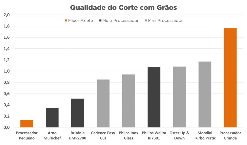 Por outro lado, ao trabalhar somente com grãos, a melhor escolha é partir para os acessórios de processador. Em especial o Mini Processador, que apresentou resultados várias vezes superiores ao Processador grande em todas as situações.