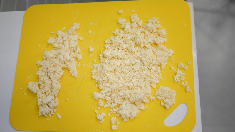 Adicionando menos da metade (130g) no acessório mini, era alimento demais para o mixer processador conseguir lidar, e os resultados foram bem piores. Até conseguiu moer uma parte, mas foi necessário duas levas para chegar num resultado parecido ao processador grande.