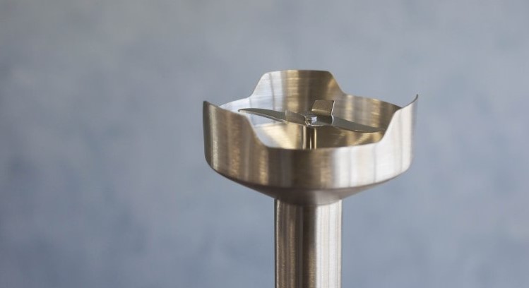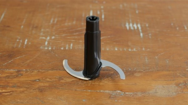 O eixo com as facas é uma peça plástica rígida com as facas coinjetadas no plástico. O acabamento é razoável, similar a modelos de mixers que vendem o processador junto. O mixer da Mondial que testamos no passado é basicamente a mesma peça com um encaixe diferente no topo.
