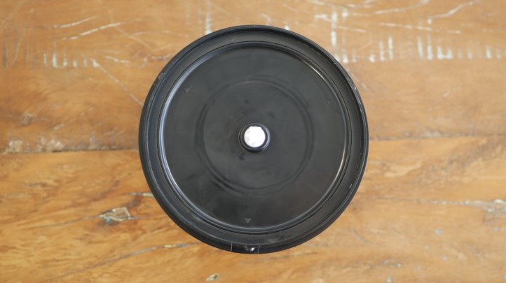 A tampa do processador é lisa, em plástico preto lustroso (polipropileno). É uma peça simples, bem feita, com um bom encaixe no processador.