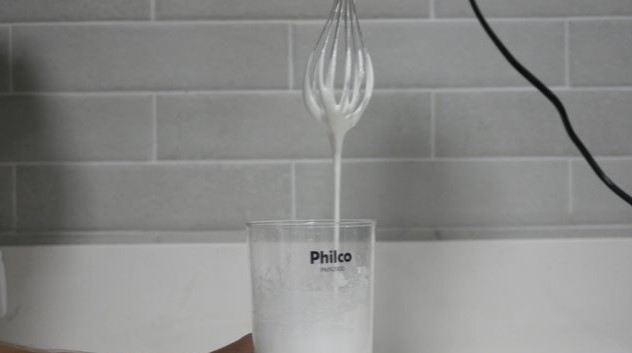 Utilizando o fouet o resultado também não impressionou. Até foi possível bater claras em neve em pouco mais de 2 minutos, porém este mixer da Philco não consegue dar o ponto para preparar um suspiro. Foi necessário mover a mistura para uma batedeira para concluir a tarefa.