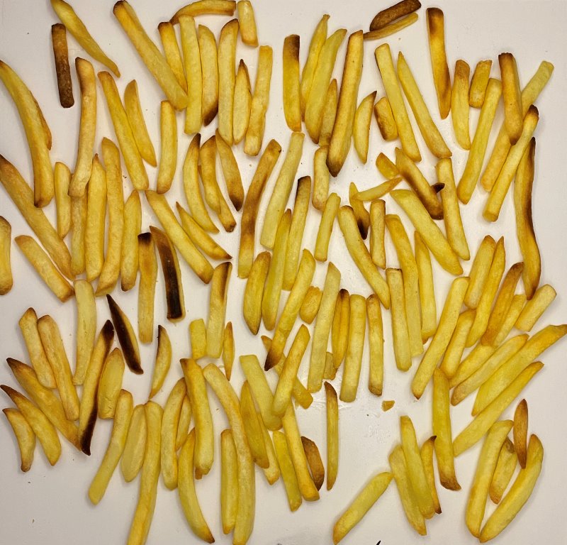 No preparo de batatas fritas foram realizados testes com o cesto giratório assim como colocando a bandeja em diversas posições. A melhor homogeneidade foi obtida com o cesto, porém foi o ciclo mais longo. Levou 35 minutos para atingir o ponto! Foi um dos ciclos mais longos de preparo de batatas fritas comparando com todos os oven fryers e air fryers já avaliados. O resultado foi razoável, porém as batatas ficaram pouco douradas e não ficaram tão macias por dentro.