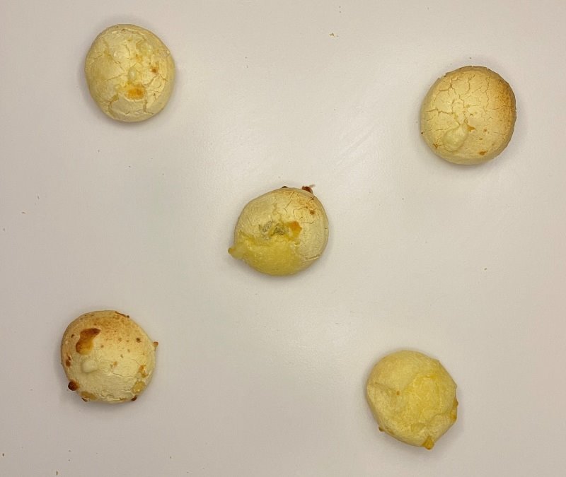 Quando fazendo pães de queijo foram feitas algumas temperaturas e níveis diferentes. Foi difícil achar um ponto ótimo para dourar de forma homogênea e entregar sem demorar muito. A melhor condição mesmo é deixar em temperatura de 160°C por 15 minutos. Mais alta a temperatura ou mais próximo da resistência acabou sendo pior. Ainda sim, o resultado foi razoável, poderia ser melhor.