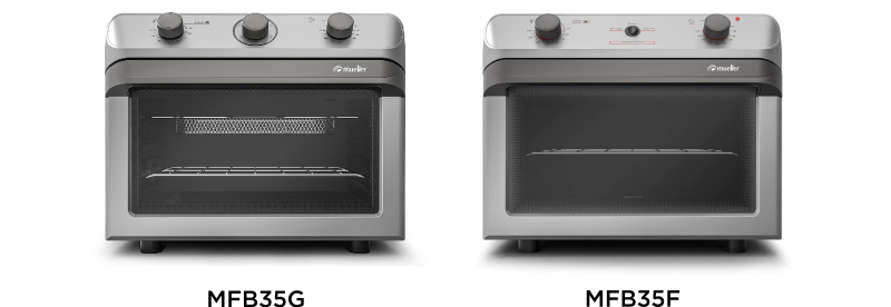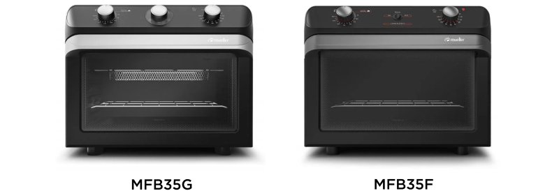 Hoje a empresa tem dois fornos elétricos neste tamanho de 35 litros, este avaliado, com a função air fryer e o modelo tradicional, somente com uma resistência superior e uma inferior. Os dois modelos podem ser encontrados em duas cores diferentes, em preto com pegador prata ou em cinza metálico com pegador chumbo, versão que a Mueller chama de “prata”.